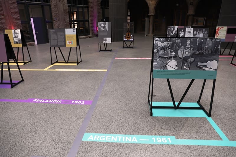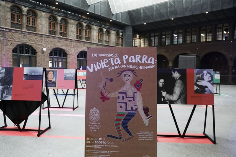 Esta exposición da cuenta de los viajes de Violeta Parra por el viejo continente y de cómo evolucionó su arte para posteriormente regresar a un Chile en plena ebullición política, social y cultural.