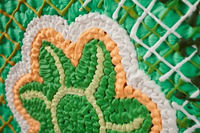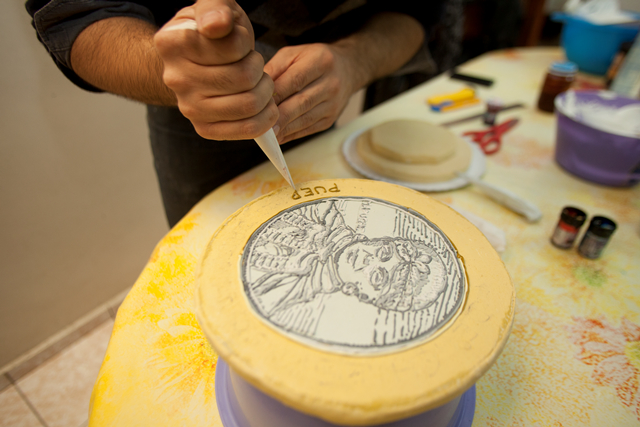 En muestra del joven artista Pedro Cona presenta billetes y monedas realizados con decoración de pastelería en la técnica de pastillaje. Una primera contraposición que salta a la vista es la representación del dinero, es decir, objetos de papel y metal que pasan de mano en mano, versus la comida, que requiere un tratamiento pulcro e higiénico para ser consumida, y cuyo valor “vital” es ontológico, a diferencia del valor monetario que es sólo representativo como medio de cambio. En ambos casos observamos la relación de la decoración con la importancia de las apariencias, que en pastelería está relacionada al lujo y la exaltación de los bienes suntuarios personales y familiares. En ese aspecto, los billetes también son una forma en que los países se dan a conocer, destacando personajes relevantes o hitos identitarios de diversa índole que implican motivos de “orgullo nacional”.